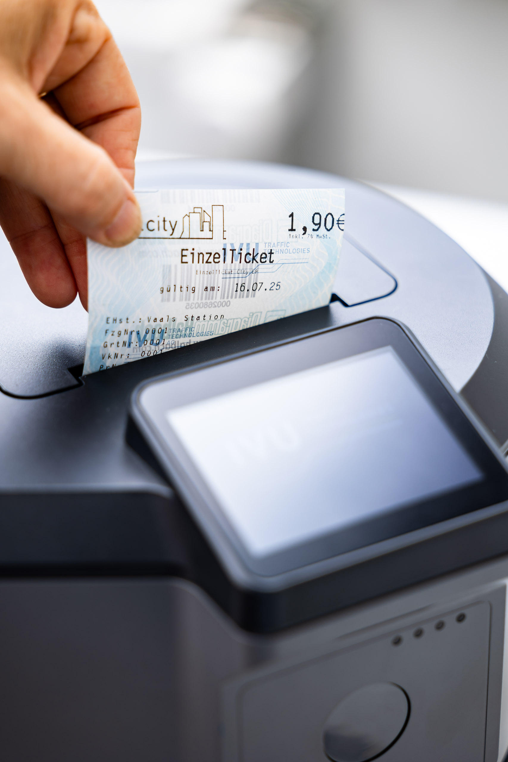 Der Bordrechner als digitale Schaltzentrale mit robustem Industrieprozessor und entspiegeltem 10-Zoll-Multitouch-Display für komfortable Bedienung bei allen Lichtverhältnissen. Ein integrierter 300-dpi-Drucker mit Easy-Load-System und variabler Papieranpassung ermöglicht schnellen, störungsfreien Ticketdruck. Für die Ticketkontrolle stehen Barcode- und NFC-Leser bereit; optional ist auch ein kontaktloser Bankkartenleser integrierbar. Ein farbiges Kundendisplay informiert Fahrgäste übersichtlich.