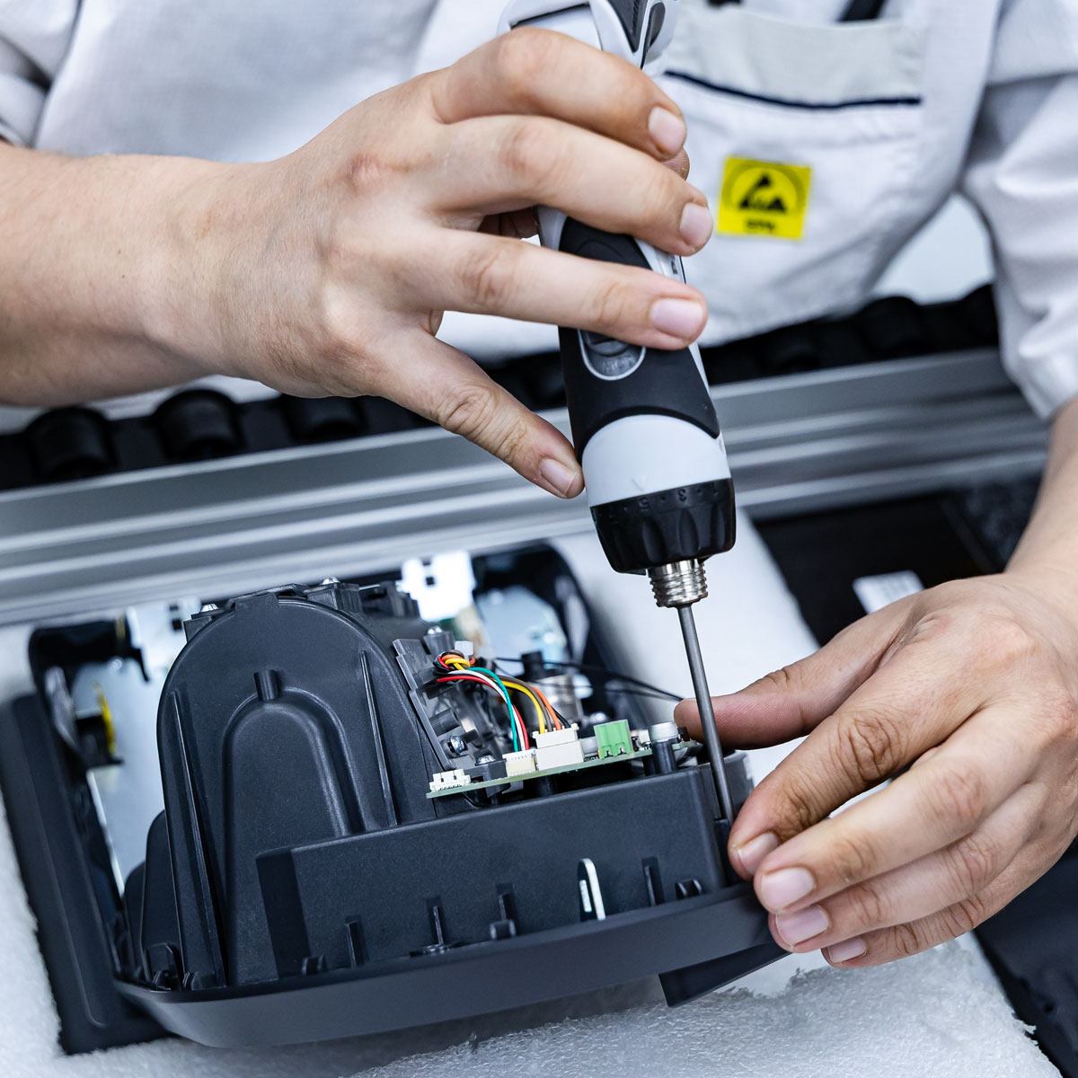 Entwicklung eines innovativen Gehäusekonzepts: Eine tragende Skelettstruktur aus gestanzten und gebogenen Blechteilen, kombiniert mit passgenau gefertigten Kunststoffelementen. Das Ergebnis: ein mechanisch belastbares, leichtes und zugleich formschönes Gerät.